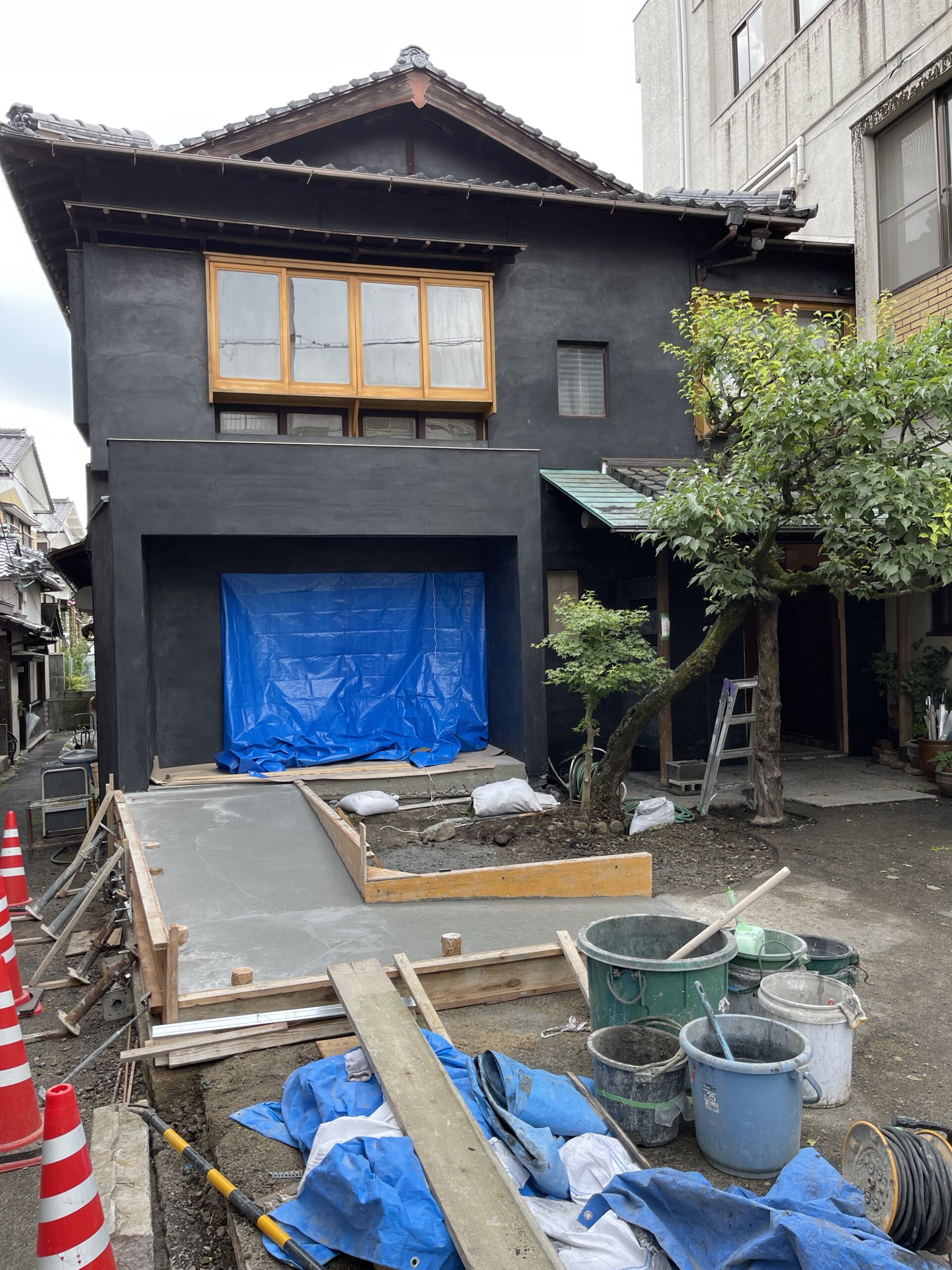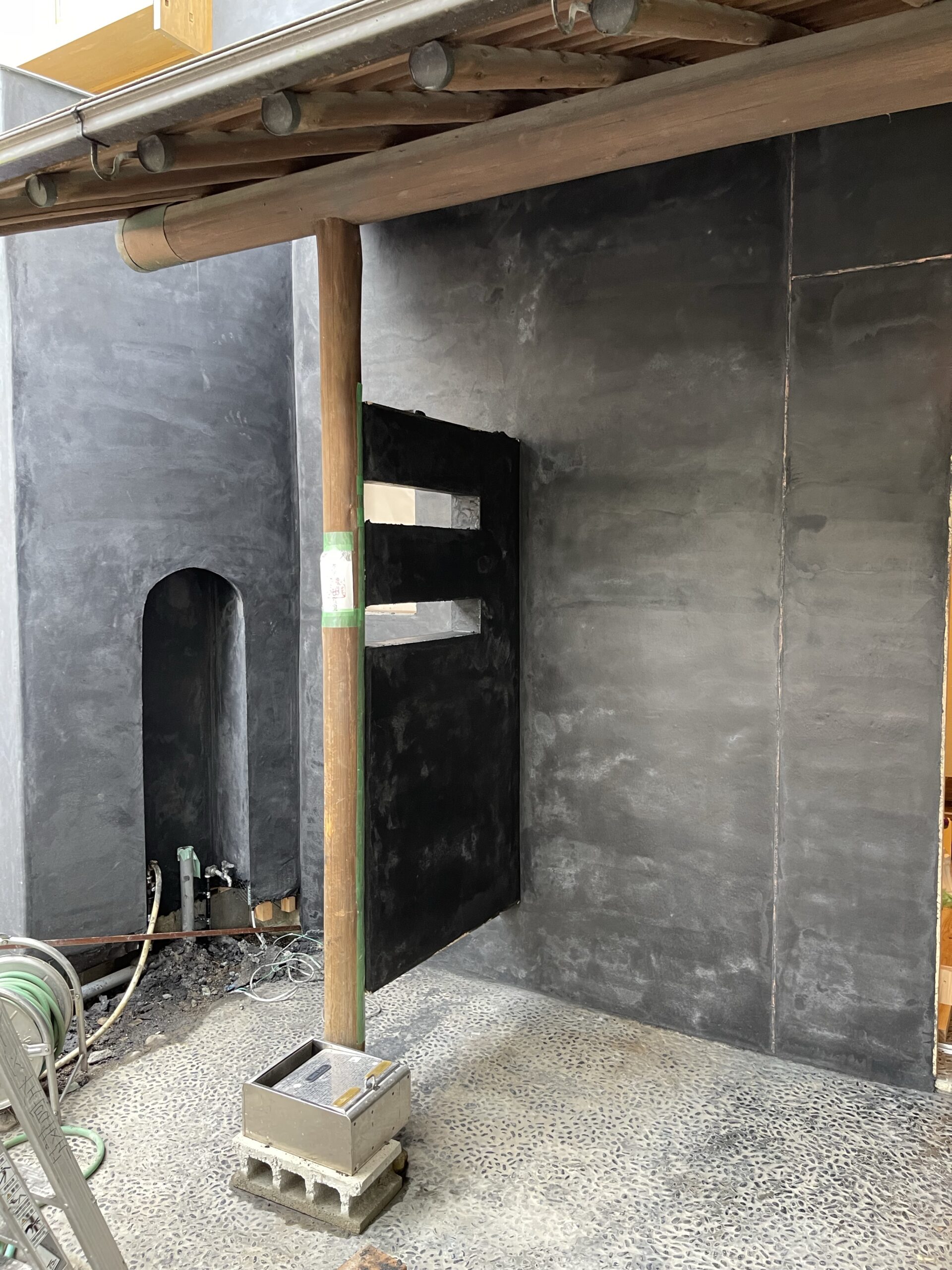外壁の黒モルタル仕上げ完成しました(^_^)黒モルタルは日数を重ねて色合いが変化して行くのでお店がオープンしてから見に行きたいと思います(^ω^)沢山モルタルを塗ったので楽しかったです(o^^o)左官最高⤴️